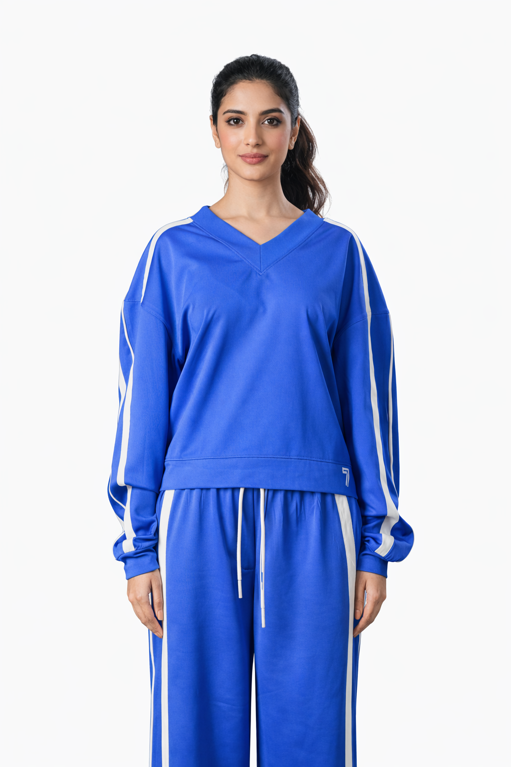 Blue V-Neck Tracksuit – Loose Fit – Women