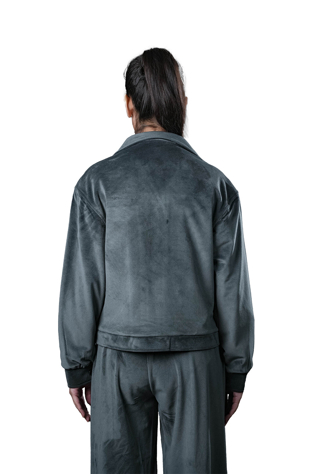 Grey Velvet Co-Ord Set – Loose Fit – Women