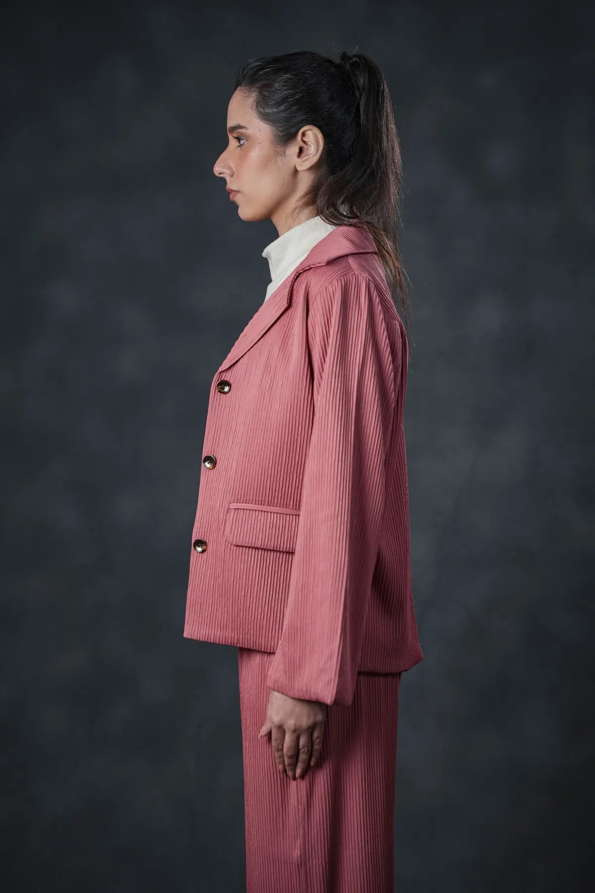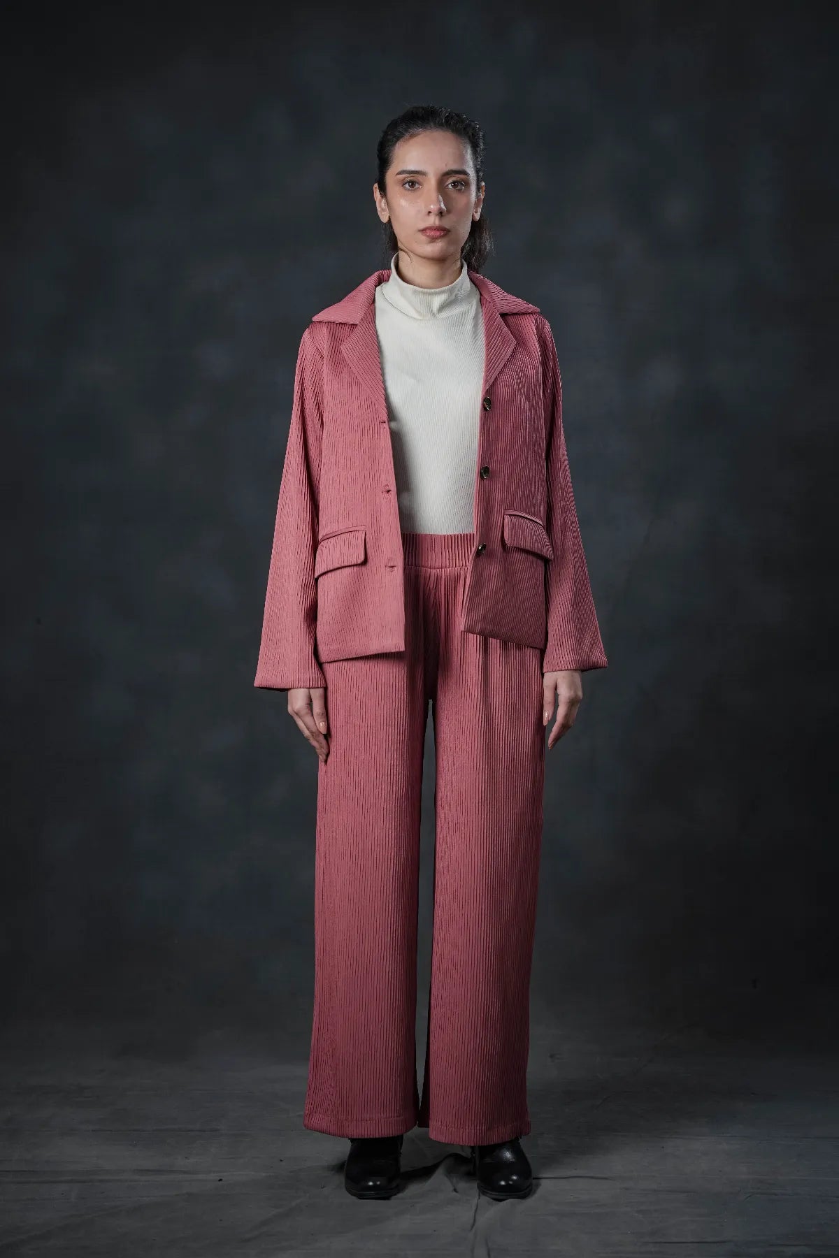 A statement piece for the confident woman who believes elegance never goes out of style. Pair it with matching wide-leg trousers or a sleek neutral top for a polished winter ensemble.