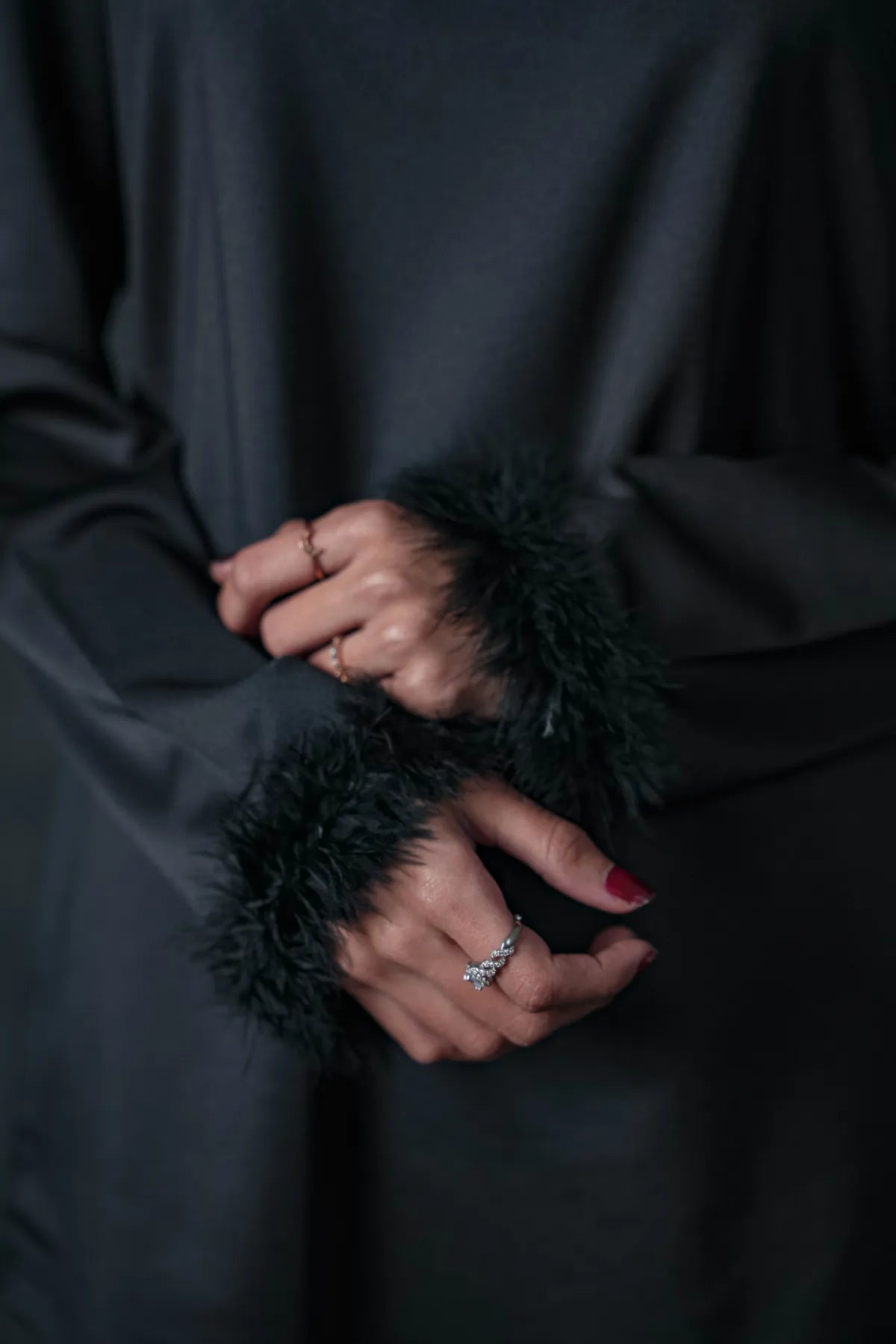 Stylish feather details on sleeve cuffs