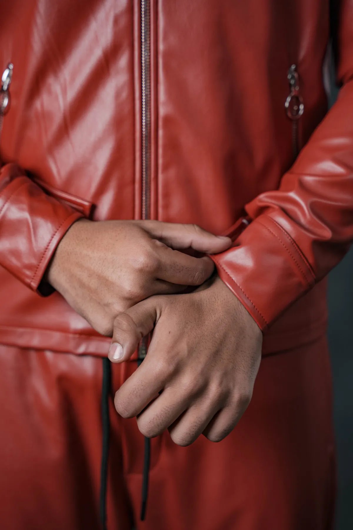 Ignite your style with the SEVEN Men's Inferno Faux Leather Set. This commanding two-piece ensemble is made from high-quality faux leather in a deep, rich brick red tone. The set includes a zip-front utility jacket featuring a structured collar and silver hardware, and matching relaxed-fit trousers with a subtle bootcut/flare at the hem. Designed for the bold and fearless, this outfit guarantees you stand out.