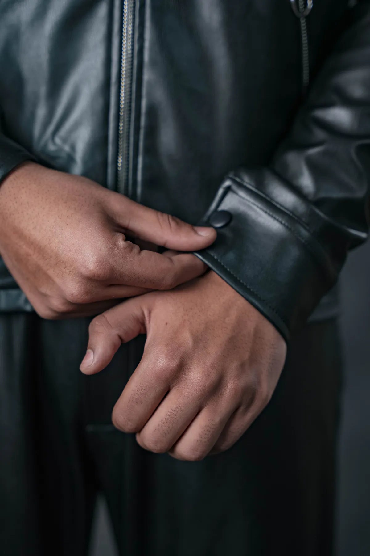 Capture a confident, modern-retro edge with the SEVEN Men's Phantom Faux Leather Set. This bold, all-black ensemble features a sleek zip-front utility jacket with a classic collar and matching trousers that have a contemporary relaxed-fit and subtle flare. Crafted from smooth black faux leather, this set brings a high-shine texture and attitude to your wardrobe. Perfect for a commanding night-out look or high-impact street style.