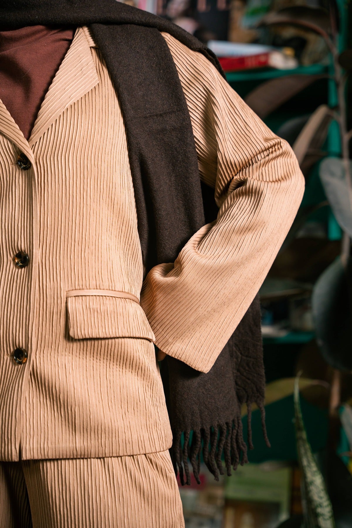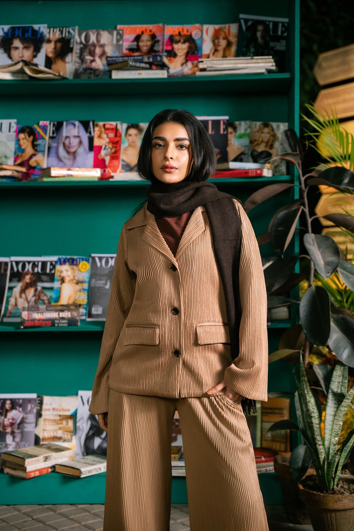 Style Tip: Layer the blazer over a black turtleneck (as shown) or a silky camisole. Pair with sharp ankle boots or minimalist heels to transition this look seamlessly from day to night. 🥂