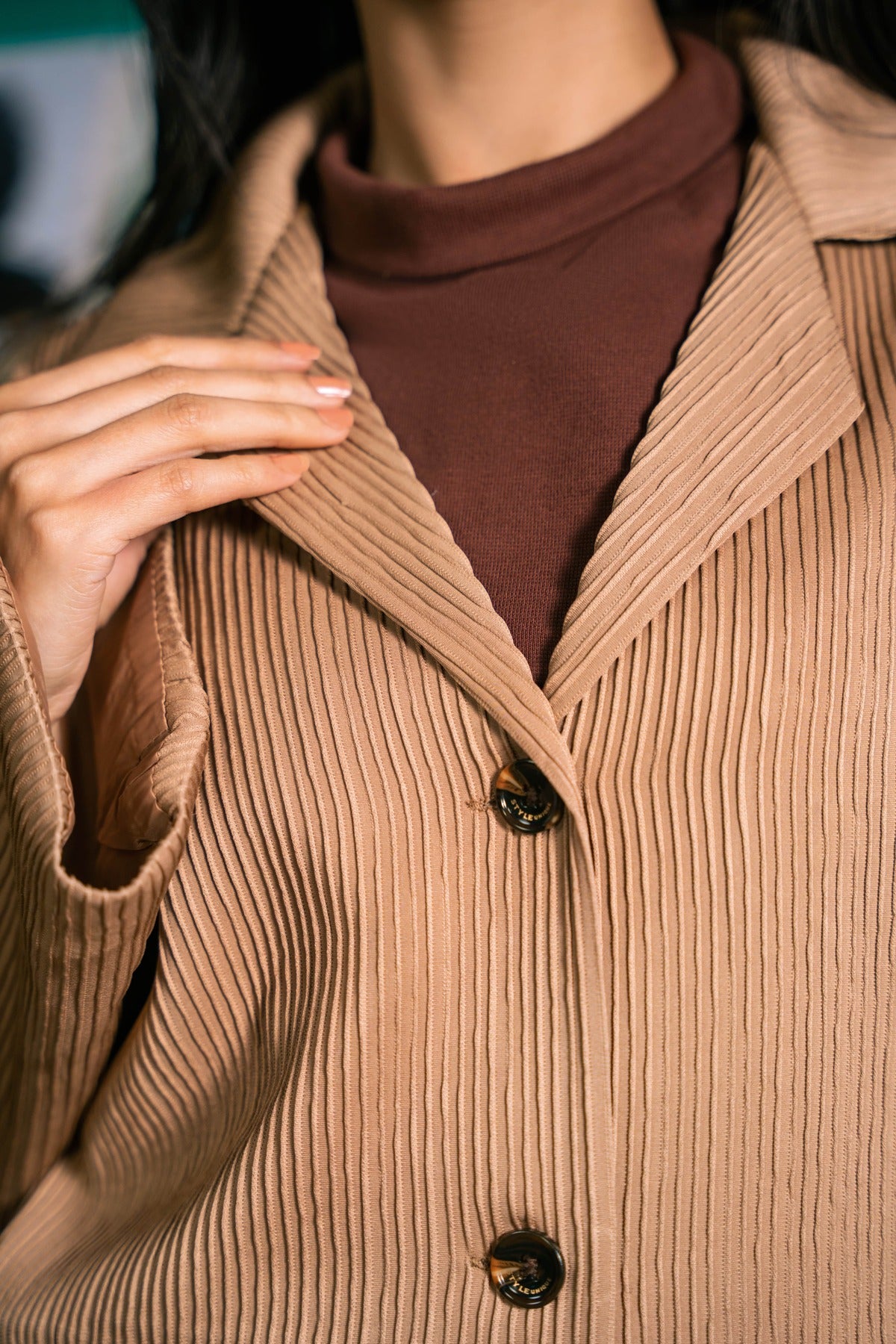 Fine Plissé (Pleated) Fabric in a rich camel-brown tone