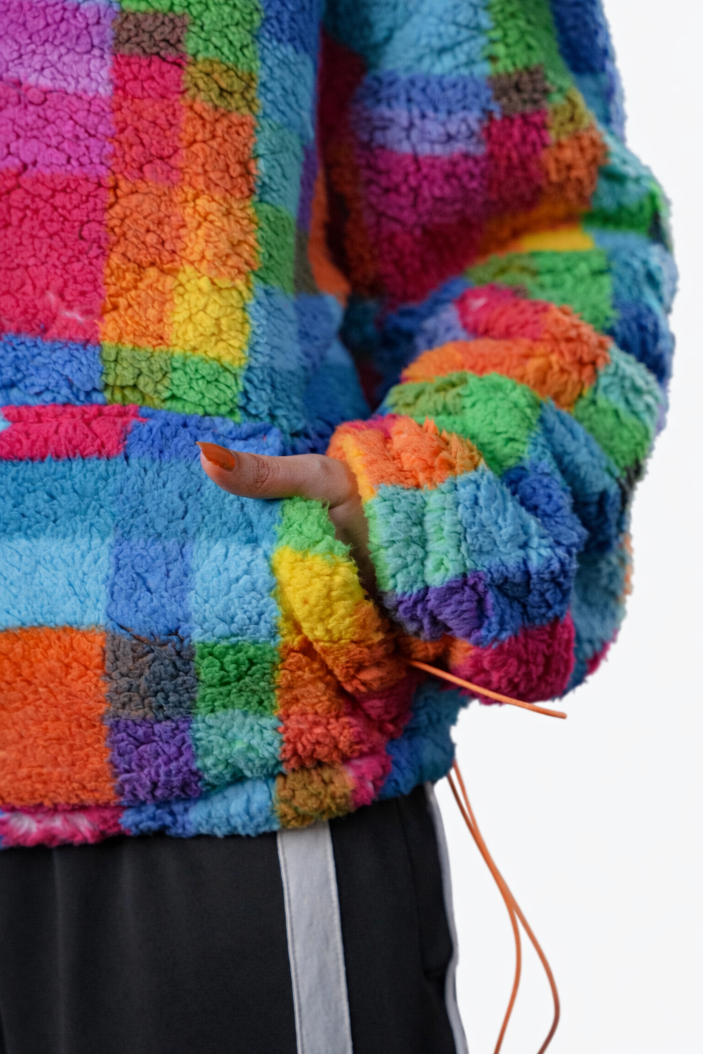 Brighten up your winter wardrobe with the Women’s Multicolour Upper — a cozy statement piece made for those who love to stand out. Its vibrant patchwork design blends bold colors with ultra-soft sherpa fleece for unbeatable comfort and style. The half-zip closure and kangaroo pocket add function to flair, keeping you warm and radiant all season.